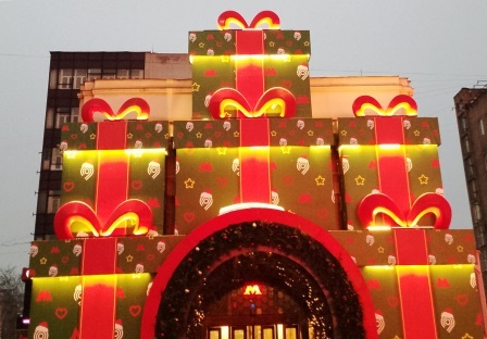 С 2022 года центральные станции метро стали украшать к Новому году нарядными ёлочками. А станция «Площадь революции» пошла ещё дальше. На ней установили не только ёлочки, но и световые ворота перед эскалатором