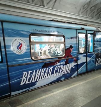 . В вагонах — фотографии советских и российских спортсменов и статистика по выигранным медалям. Можно узнать интересные факты о спортивных дисциплинах, в том числе недавно вошедших в программу Олимпийских игр.