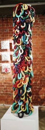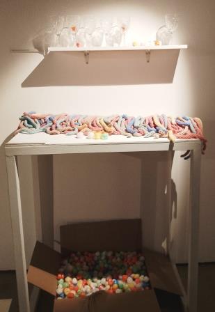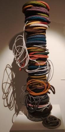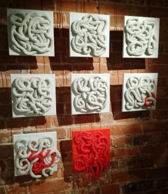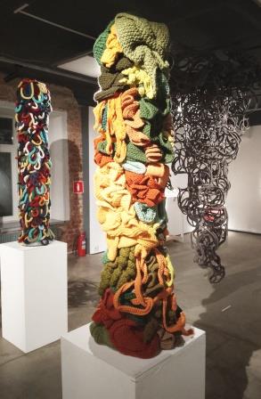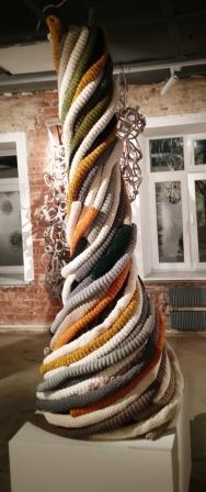 До 2025 года я в этой галерее больше не была и даже забыла о её существовании. Но осенью 2025 года я заинтересовалась выставкой «Итак, что мы имеем» с объектами из пряжи и ниток. Попала на вернисаж. Художница рассказывала о том, как родилась эта выставка. Всё началось со страшного диагноза, который ей поставили. Собственно, он и подтолкнул её к тому, что мы увидели на вернисаже. У каждого объекта — своя история. «Почему я не засну сегодня»