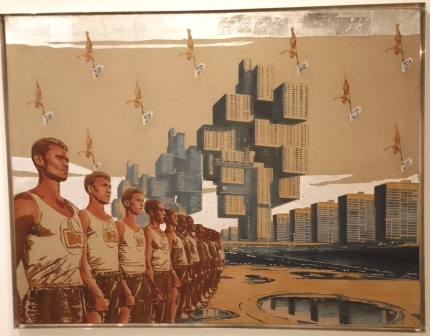 К моему великому удивлению, автор первой выставки относится к послевоенному поколению художников. Почему к удивлению? Потому что его картины так же невнятны, как и работы многих современных художников. Вот так выглядит, по мнению художника, высотка на Котельнической набережной