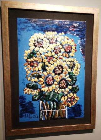 ), мифологические и абстрактные сюжеты. Натюрморты тоже представлены в технике огненной живописи. Открывает выставку прекрасная работа Зураба Церетели «Виктория»