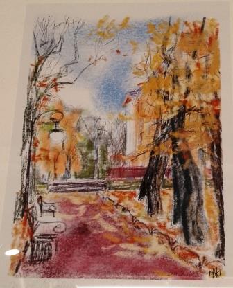Следующий вернисаж опять через месяц. Выставка называлась «Отвлечение от реальности». Были представлены работы нескольких современных художников и одного скульптора (группа Арт-Бокс), которые работают на грани авангардных течений и абстракции. Из их выступлений следовало, что они относят себя к школе Родченко. Но если картины Родченко мне, в основном, понятны, то эти работы я понимала не всегда. Понятных картин было всего две (не считая портретов) — «Парк Музеон»