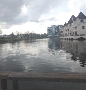 Перед зимой пространство вокруг фонтана огораживают для строительства катка. Поверх ограждений открывается красивый вид
