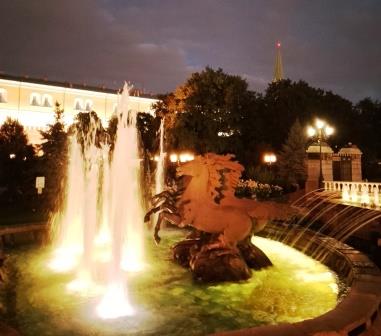 В 2025 году фонтаны в Александровском саду обновили. Привлекает внимание скульптурная композиция «Герои сказок» с фигурами сказочных персонажей и животных