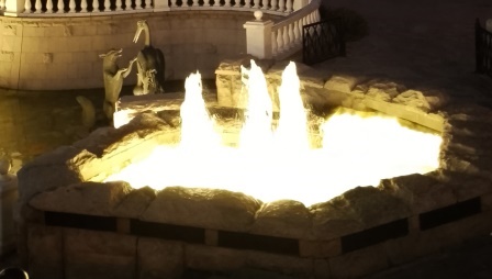 В центре фонтанного комплекса «Гейзер» расположена скульптурная группа «Времена Года» — четверка бронзовых коней, символизирующих четыре сезона — Лето, Осень, Зиму и Весну. Создаётся впечатление, что кони стремятся перепрыгнуть через вертикальные струи фонтана