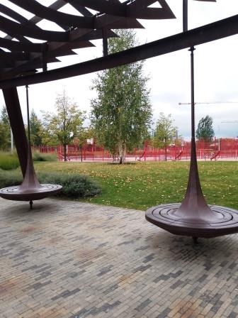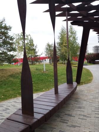 Архитектурной доминантой парка является конструкция длиной 1,3 километра под названием «Гусеница». Сооружение сделано из кортеновской стали и дерева. Особенностью конструкции является постепенное изменение её предназначения: в одной части — пергола, в другой — прогулочная дорожка, в третьей — различные павильоны. В конструкцию интегрированы интересные лавочки — скамейки-лодочки