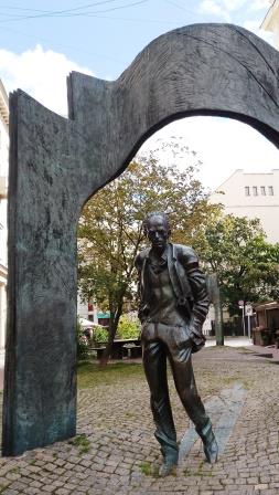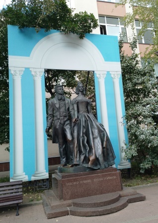 , установленному напротив дома, в котором Пушкин жил пару месяцев, о чём свидетельствует табличка на фасаде; памятнику Окуджаве
