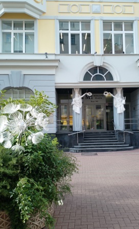 . Вход в бизнес-центр Midland Plaza украшен не только искусственными одуванчиками, но и барельефами