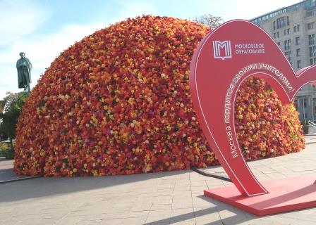 В 2025 году к Дню учителя на Пушкинской площади появился огромный букет